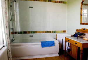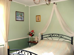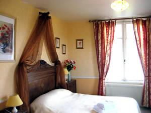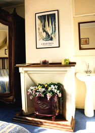 living room and kitchen. ![]() ![]() La Maison du Vert is a small friendly hotel with just 3 rooms. Room 1 (pictured opposite) is our family room it has a double bed and a single bed. There is room for an extra single folding bed or cot if required. When not booked by a family this room is also used as double room or twin room. There is also a hand basin in the bedroom. The Family Room has a lovely big en-suite bathroom with wooden laminate flooring. There is a bath, shower, hand basin and toilet. There are far reaching views of the garden and countryside and looking down you will see our organic vegetable gardens from the large original windows. ![]() ![]() Room 3 pictured opposite has a double bed with room for an extra single folding bed or cot if required. This room has 2 large original windows with different aspects so is very bright. One window looks towards the village with forest behind, the other looks out over the garden. The ensuite has a shower, wash basin and toilet with views of the garden and the Touques valley. The front windowsills of all our rooms have window boxes filled with colourful flowers. Room 2 pictured opposite has a double bed with room for an extra single folding bed or cot if required. It has 1 large original window that looks towards the village with woodland beyond. Because of the layout of the house Room 2 doesn't have an en-suite but has it's own shower room and toilet opposite the room. There is a hand basin in the bedroom. ![]() ![]() The Fireplace in Room 1